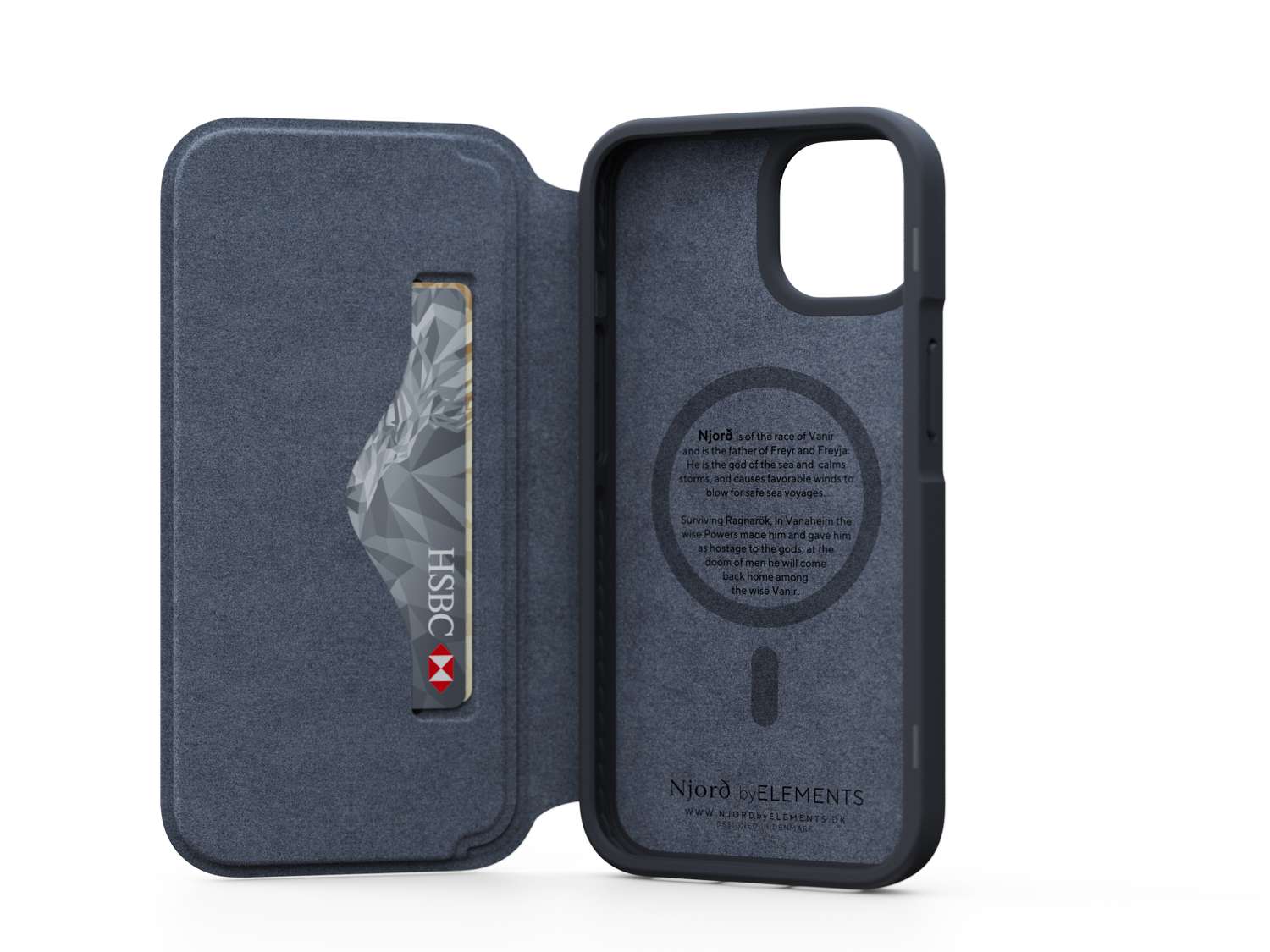 Our elegant Njord Wallet Case has a minimalistic yet secure magnetic design closure and can fit 2 Credit Cards as well as some paper notes.